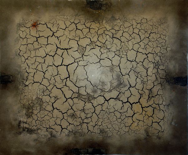 Tone Lapajne, Zemeljska materija kot sestavni del vesolja (Zemlja v nebu), 2006, plastifcirane zemlje na platnu