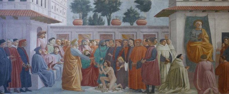 Masaccio, sv. Peter oživi Teofilovega sina po 14 letih, kapela Brancacci, Santa Maria del Carmine, Firence